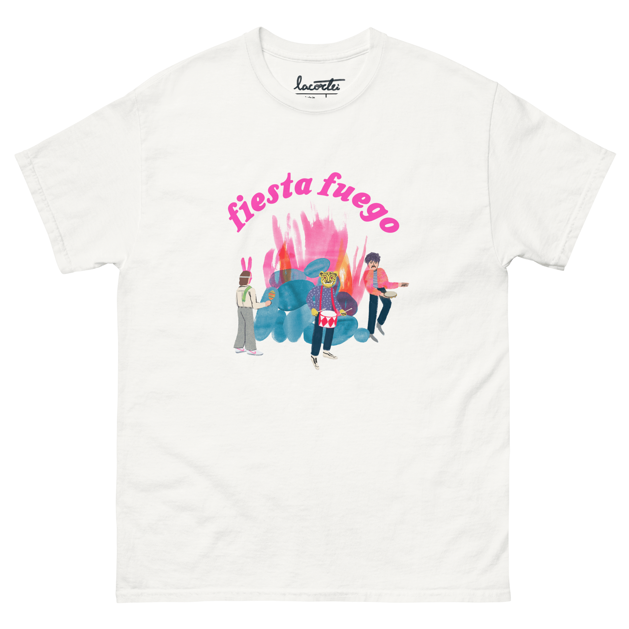 Fiesta Fuego unisex Tee: • 100% cotton • Fabric weight: 5.0–5.3 oz/yd² (170-180 g/m²) • Open-end yarn • Tubular fabric • Taped neck and shoulders • Double seam at sleeves and bottom hem
